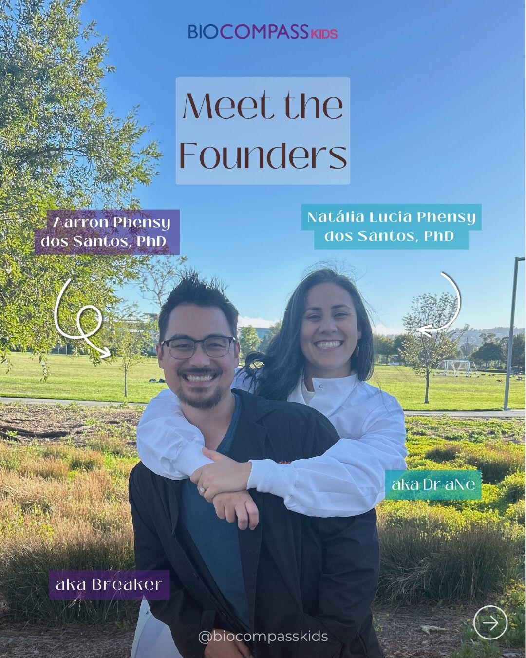 Meet the founders of BioCompass Kids, Drs. Natalia and Aarron Phensy dos Santos! Together, we are building a world where every child feels empowered to lead their own scientific exploration - shaping the future through curiosity and imagination.